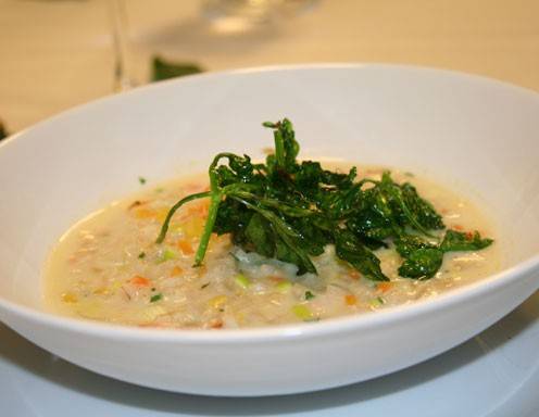 Bei uns in Kärnten kommen in die Gerstlsuppe geselchtes Rippenfleisch oder sonstige Selchfleischstüpcke hinein, auch gekochte weiße Bohnen