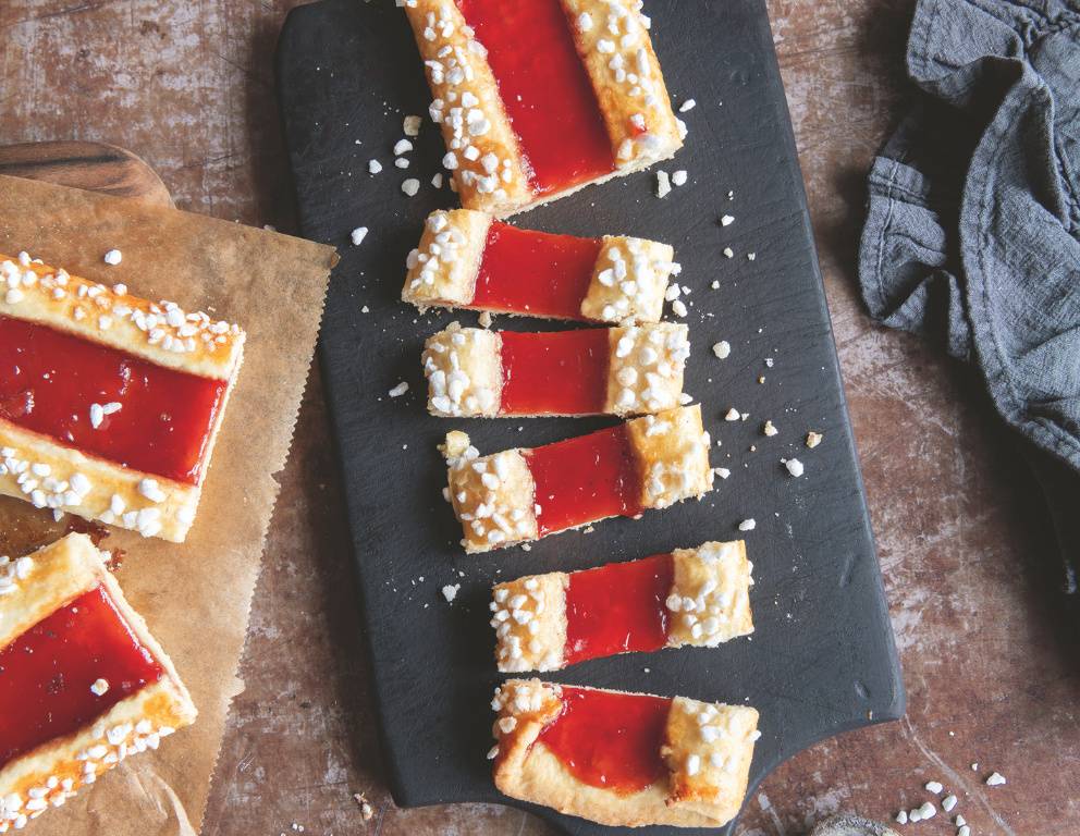 Tipp: Teigreste als Kügelchen aufs Blech setzen, eine Vertiefung hineindrücken und mit Gelee füllen.