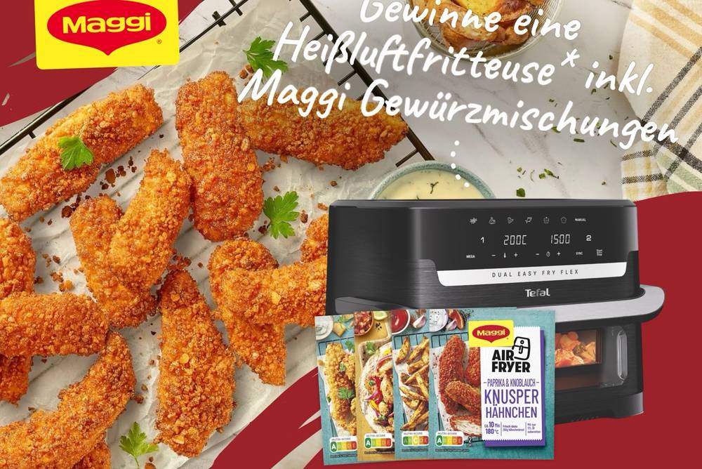 MAGGI verleiht dem Gewinn das gewisse Extra: Mit den neuen MAGGI Airfryer-Gewürzmischungen gelingen herzhafte Gerichte ganz einfach. Für extra viel Geschmack bei minimalem Aufwand.