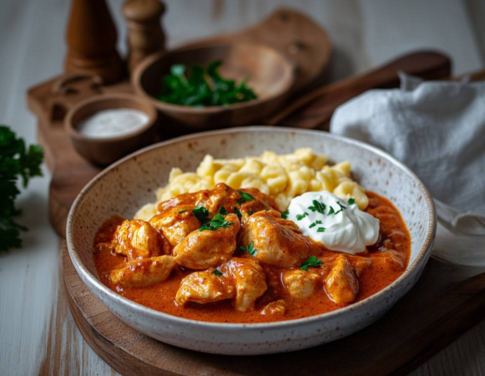 Paradeiser kurze Zeit in kochendes Wasser geben, aber nicht machen. In kaltem Wasser abschrecken, häuten, dentengelansatz entfernen, die Paradeiser halbieren, entkernen und in Würfel schneiden.