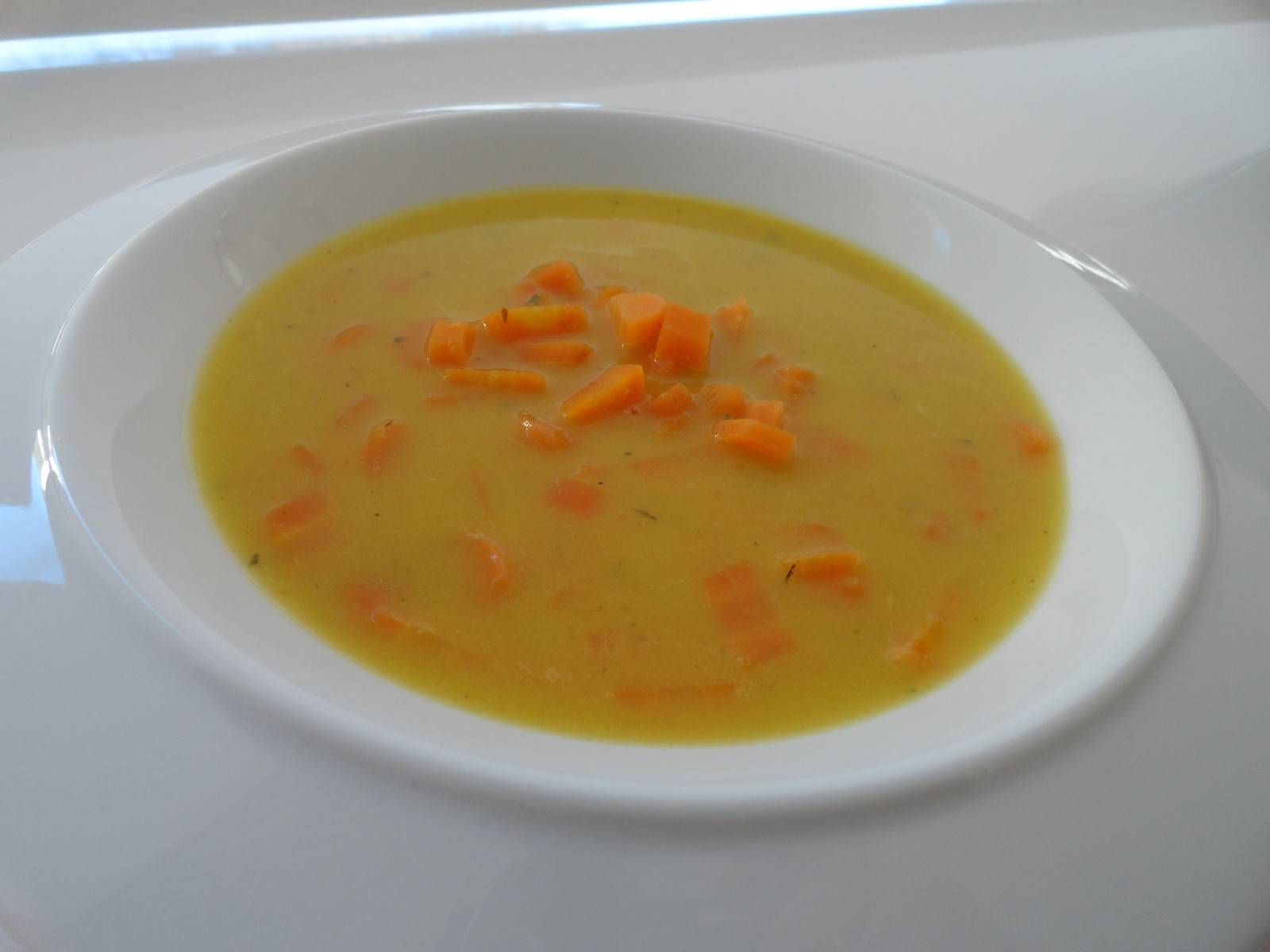 Die Karotten gemeinsam mit den Zwiebeln in einem Topf anschwitzen, Erdäpfeln hinzufügen, mit Suppe aufgießen und mit dem Lorbeergewürz und den Nelken weichkochen.