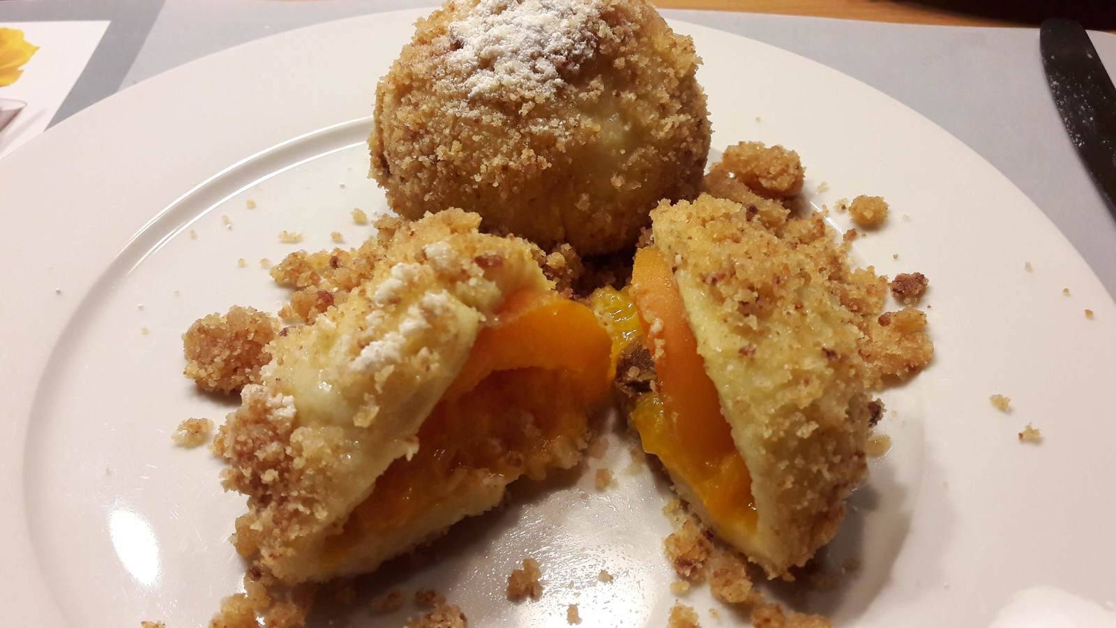 Die Teigstücke auf einer bemehlten Arbeitsfläche flachdrücken und damit die gefüllten Marillen umhüllen. Zu Knödeln formen und diese in Salzwasser 12-15 Minuten kochen.
