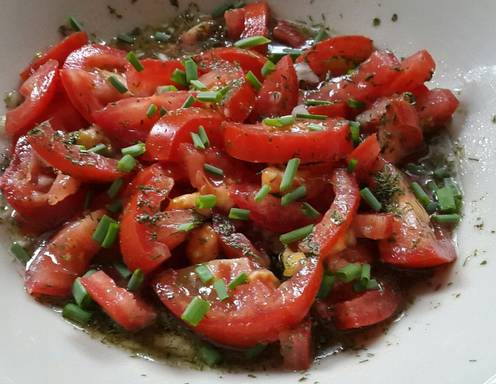 So ein Paradeiser-/Tomatensalat ist so einfach, aber genial & lecker!JA, wie eva-maria2511 bereits schrieb: Knoblauch muss ran, außerdem ordentlich Zwiebeln rein!Gut durchziehen lassen & einfach frisches, knuspriges Brot dazu.