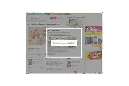 Eine Warnung erscheint: "Bitte deaktivieren Sie Ihren Pop-up-Blocker".