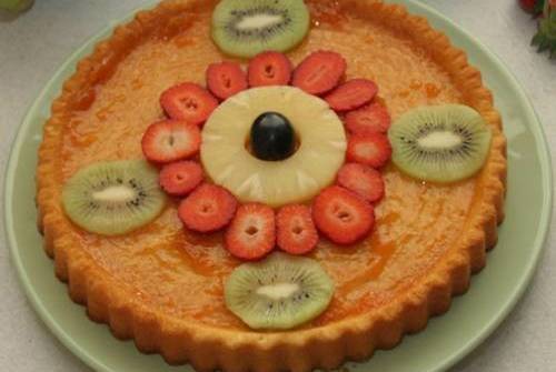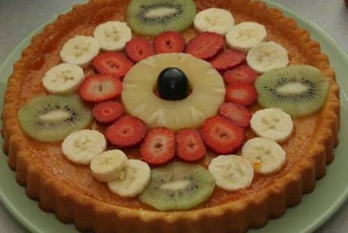 Wer die Obsttorte raffinierter gestalten möchte, kann sie vor dem Belegen mit Marmelade oder Creme bestreichen. Auf diese Weise weicht auch der Boden nicht so leicht auf. Dann können mit den Früchten schöne Muster gelegt werden.