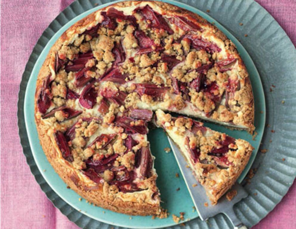 - Im Ofen (Mitte, Umluft 160 °C) den Rhabarber-Topfenkuchen ca. 45 Minuten backen, dann den Kuchen im ausgeschalteten Ofen weitere 10 Minuten stehen lassen. Dann herausnehmen, ca. 20 Minuten ruhen lassen, aus der Form nehmen und vollständig auskühlen lassen.