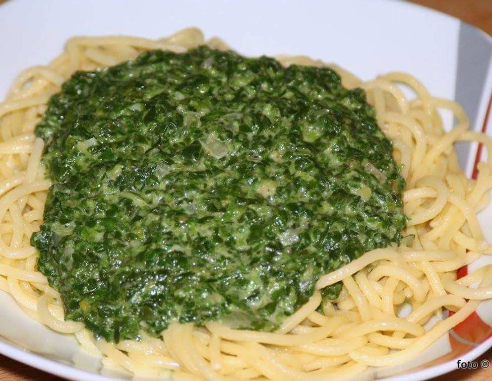 - Die Spaghetti in ausreichend kochendes Salzwasser Form. Waehren die Nudeln machen, den Knoblauch fein zerhacken und mit der zerhackten Petersilie, den Basilikumblättern und dem klein gehackten und passierten Spinat mischen. Das Öl in einem kleinen Töpfen erhitzen und die gehackten Ingredienzien sowie die Pinienkerne auf mittlerer Flamme erhitzen. Die Nudeln gut abrinnen und in eine ausgebutterte Gratinform Form. Mit der vorbereiteten Sauce mischen, mit frisch gemahlenem Pfeffer überstreuen und im aufgeheizten Backrohr bei 190 °C überbacken. In der Gratinform zu Tisch bringen.