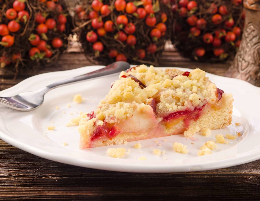 - Mit Zwetschken belegen. Den Streuselteig zerkrümeln und über den Kuchen streuen.