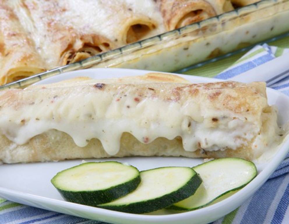 - Herausnehmen und überbackene Nudelpalatschinken warm servieren.