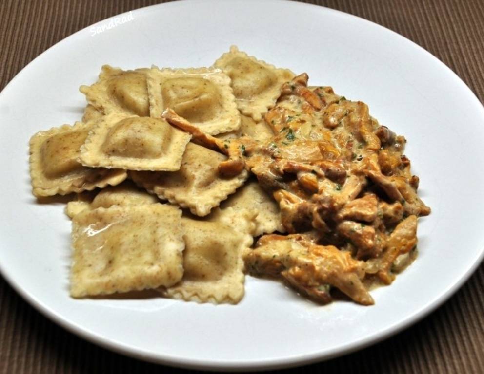 - Die Schwammerlsauce mit Salz, Pfeffer und gehackter Petersilie nachwürzen. Ravioli in Salzwasser al dente kochen.