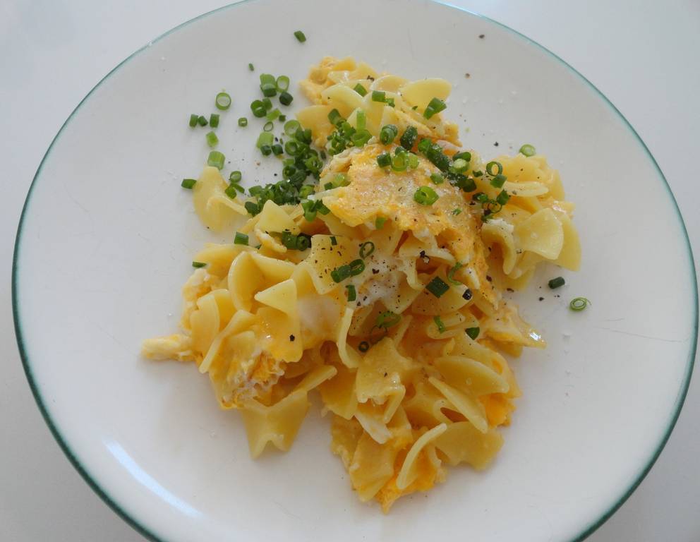 Besonders fein schmeckt das Eiernudel Rezept, wenn man etwas geriebenen Käse oder würfelig geschnittenen Schafkäse unterrührt.