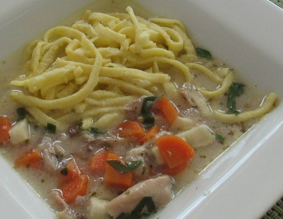 - Kalte Butter in Stücke einschwenken. Das Preiselbeerkompott unterziehen. Dazu Nudeln oder evtl. Salzkartoffeln zu Tisch bringen.