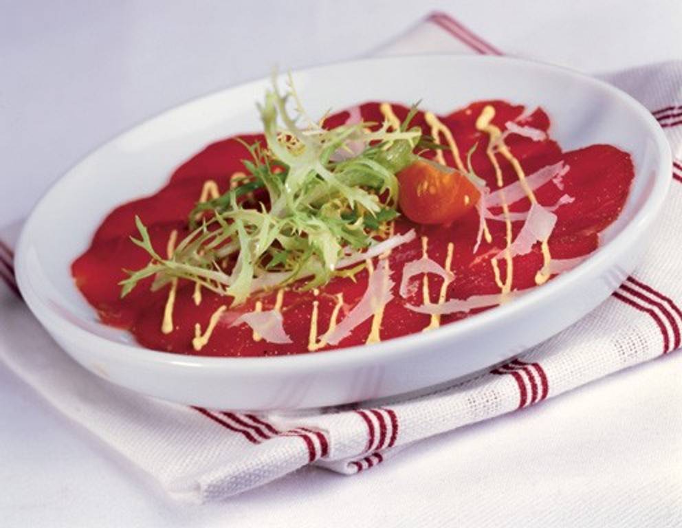 Als Beilage zum Carpaccio vom Rind mit Senfsauce empfehlen wir frisches Weißbrot oder Toasts.