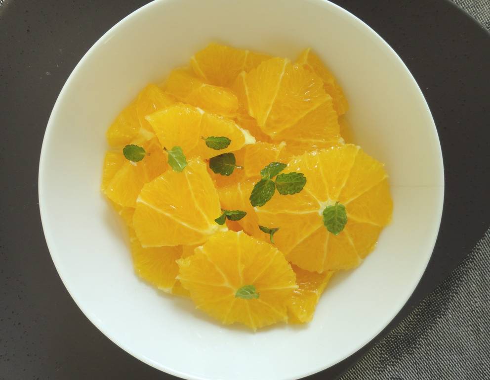 - Die Orangen sorgsam von der Schale befreien, die Filets mit einem scharfen Küchenmesser herauslösen und auf Tellern anrichten. Die Orangenreste auspressen und die Filets mit dem Saft begießen. Vor dem Servieren ein wenig Orangenlikör darüber träufeln und mit Minze und Pistazien dekorieren.