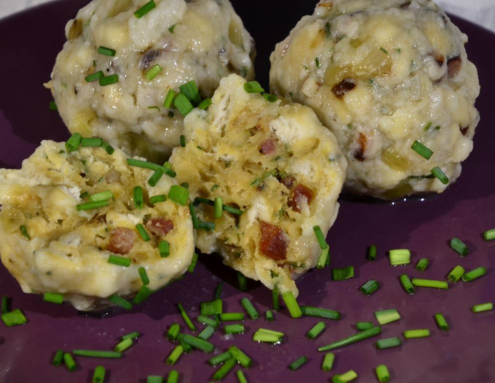 - Für die Tiroler Knödel die Semmeln klein hacken, in etwas Milch einweichen, leicht mit Salz würzen. Schnittlauch (feingehackt), Speck, Bauernschinken, Salametti und Cervelats alles zusammen feingehackt mit Mehl mischen.