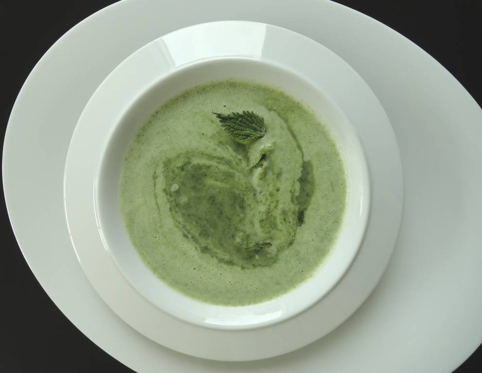 - Den Kochtopf von der Herdplatte nehmen und die Blätter mit einem Pürierstab fein pürieren.