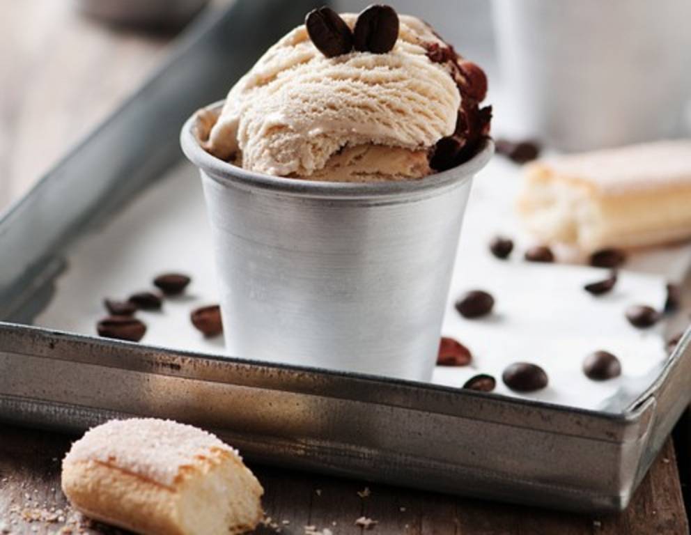 Besonders neckisch am Eistiramisu schauen Kaffeebohnen aus Schokolade als Verzierung aus.