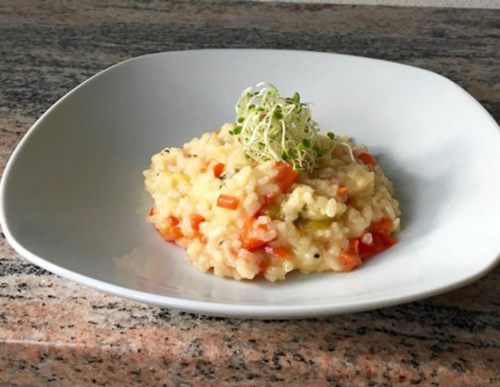 - Die Paprikawürfel dazumischen. Den Risotto weitere 15 min andünsten.