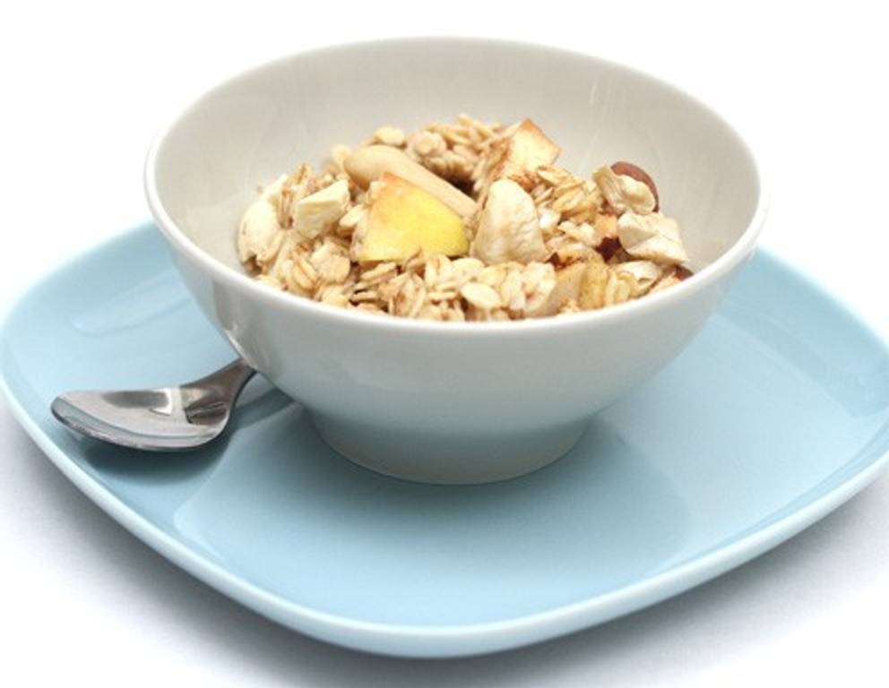 Verwenden Sie für das Haferflocken Frühstück mit Nüssen Sojamilch statt normaler Milch. Sie ist süßer und Sie können so den Zucker einsparen.