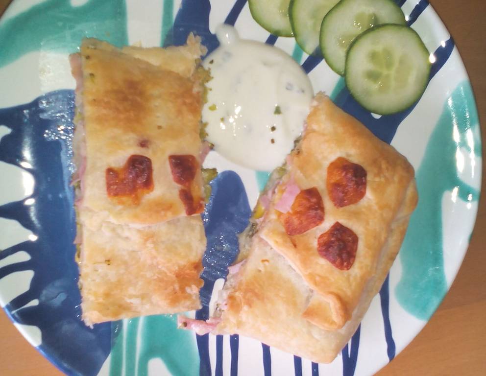 - Blätterteig noch etwas ausrollen, aber nicht zu viel und am besten gleich in eine mit Backpapier ausgelegte große Backform (oder Backblech) legen. Grießmasse in der Mitte auftragen, der Länge nach eine kleine Rinne einrücken und darin den Käse verteilen. Teig von allen Seiten übereinanderschlagen. Dabei zu große Teigreste behutsam wegschneiden, nach Belieben zu kleinen Röllchen formen und den Broccolistrudel damit auf der Oberfläche verzieren. Mit Eiklar bestreichen und den Broccolistrudel bei 180 °C ca. 40–45 Minuten goldgelb backen.