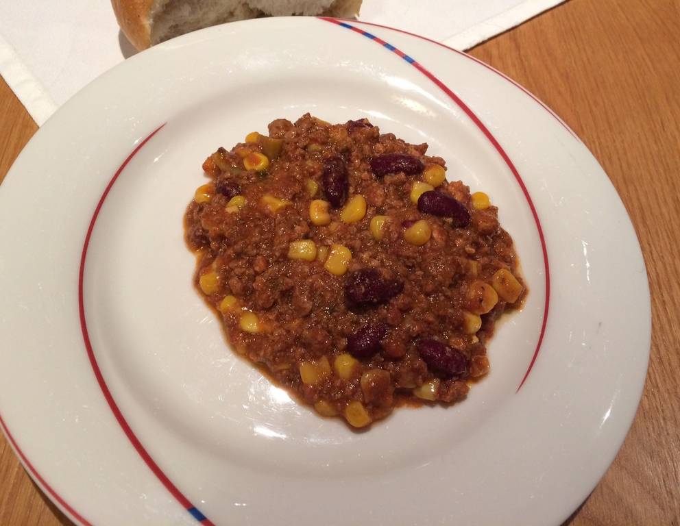 - Das Öl in einem grossen Kochtopf heiß machen und Zwiebel-, Knofel- und Chiliwürfel dadrin dämpfen. Das Faschiertes dazufügen und anbräunen. Die Mischung mit Salz und Pfeffer würzen. Die angebratene Fleischmischung mit der Gemüsebullion aufgiessen und die Tomatenwürfel, die Kidneybohnen sowie das Paradeismark dazufügen. Mit den übrigen Gewürzen, dem Kakao und Zucker würzen und aufwallen lassen lassen. Temperatur verkleinern und bei geschlossenem Deckel zirka 20-30 Min. auf kleiner Flamme sieden lassen.