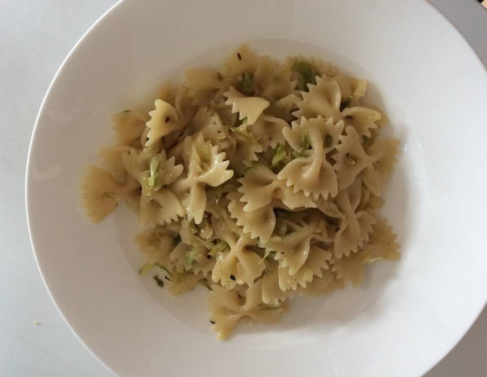 - Den Kohl und Parmesan dazumischen. Danach zirka 2 Kellen von dem Nudelwasser dazufügen. Alles aufrühren und den Deckel auflegen. 5 Min. leicht wallen, dazu abermals ab und zu aufrühren. Die Farfalle derweil al dente am Herd kochen.