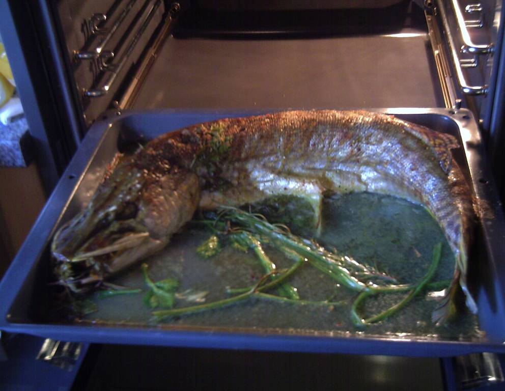 - Paradeiser kreuzweise einkerben, mit Salz und mit Pfeffer würzen, jeweils einen Butterflocken daraufsetzen und ein paar Minuten im noch heißen Backofen andünsten. Sauce und Paradeiser zum gebratenen Hecht servieren.