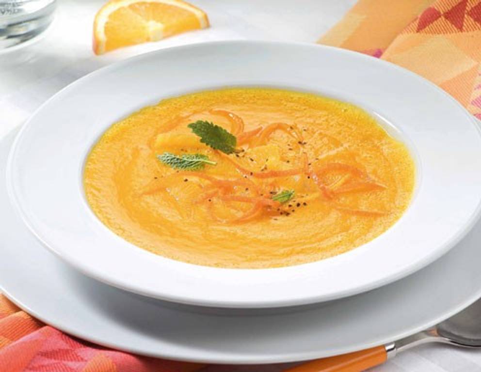 Mehr Orangenaroma: Wer Appetit darauf hat, würzt die Suppe noch mit dem Saft einer halben Orange oder 1 EL Zitronensaft.