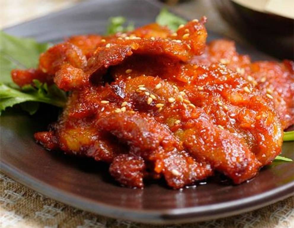 Das mit Ingwersaft bespritzte Schweinefleisch bekommt durch das Grillen den besten Geschmack.