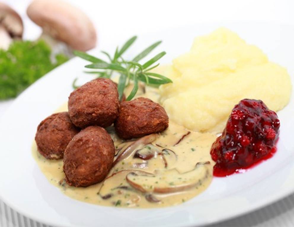 Charakteristisch für die schwedischen Fleischbällchen ist dabei die cremige Sauce, und dass das Paniermehl vorher in Schlagobers eingeweicht wird, damit die Köttbullar noch flaumiger werden.