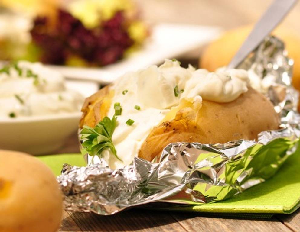 - Die gegrillten Erdäpfelhälften mit dem Püree füllen und noch kurz übergrillen.