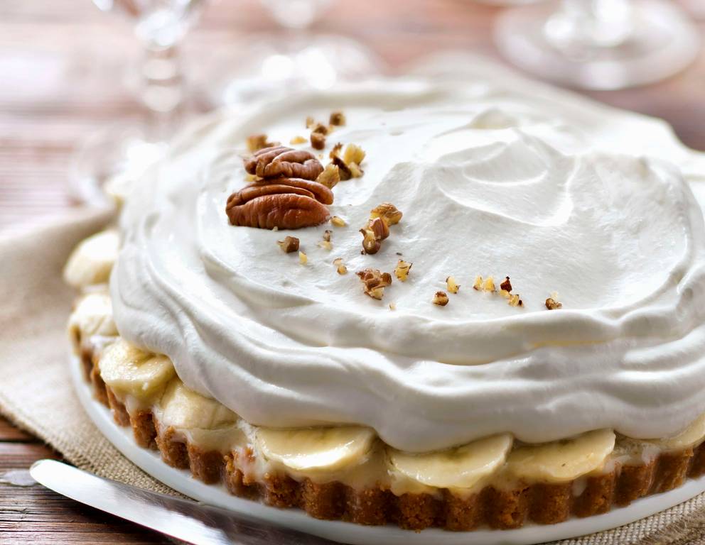 - Banoffee Pie mit Pekannüssen bestreut servieren.