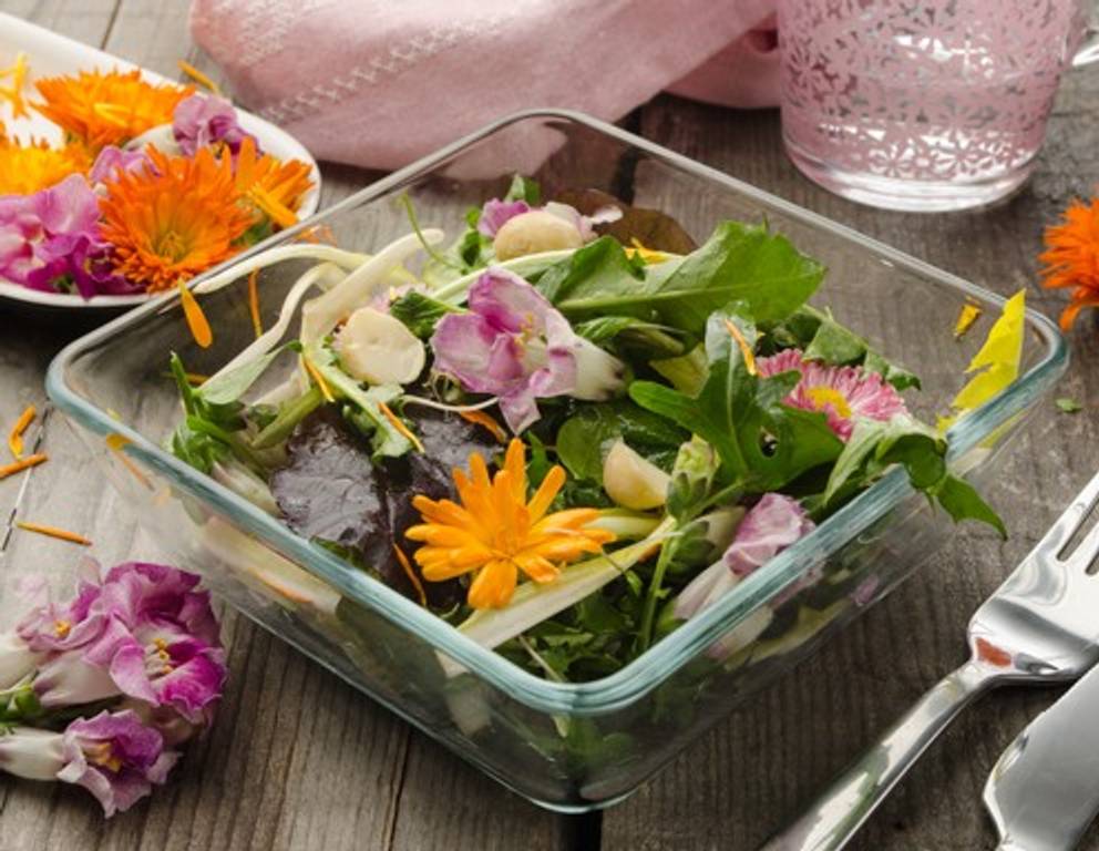Der Löwenzahnsalat kann anstatt mit Macadamianüssen auch mit frischen Heidelbeeren zubereitet werden.
