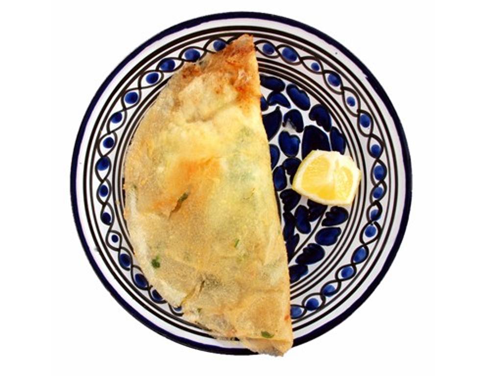 - Für den Brick mit Ei breiten Sie den Brickteig auf einer Arbeitsfläche aus. Würzen Sie den Teig mit Salz und Pfeffer und geben Sie die Petersilie hinzu.