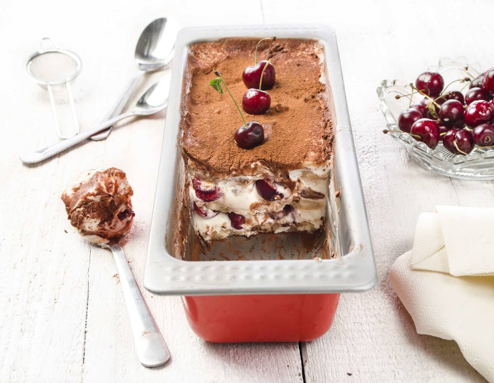 - Das schlanke Kirsch-Tiramisu im Kühlschrank für mindestens 2 Stunden kaltstellen und vor dem Servieren mit gesiebten Kakaopulver bestreuen.