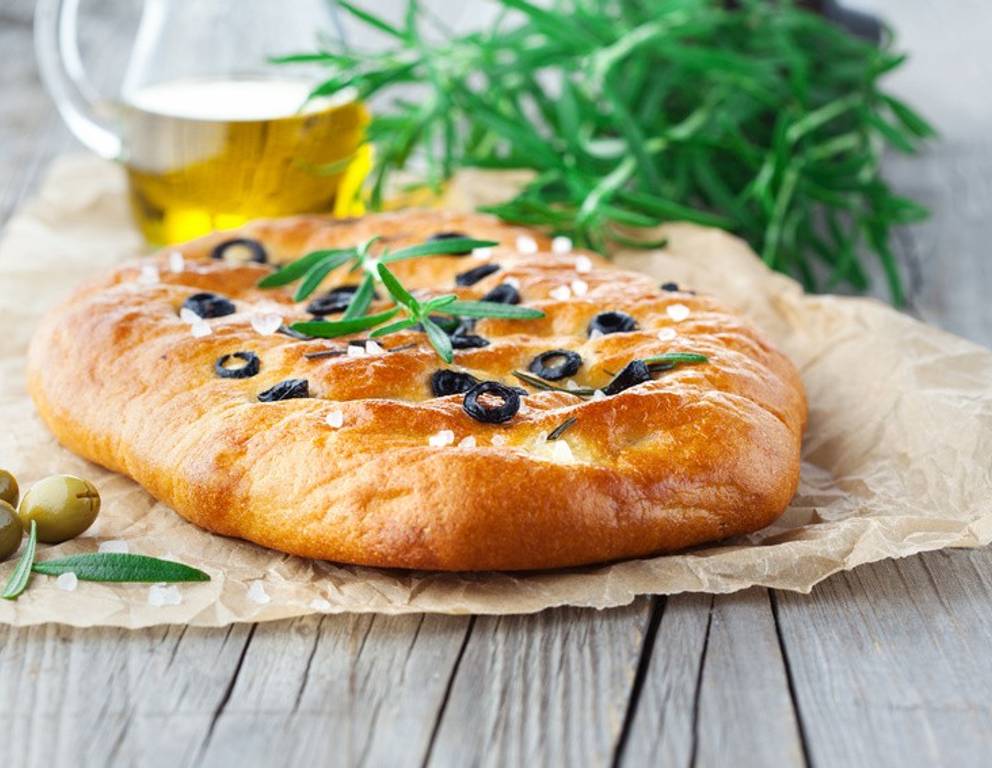 Die Oliven-Focaccia schmeckt auch mit grünen Oliven oder einer Mischung.