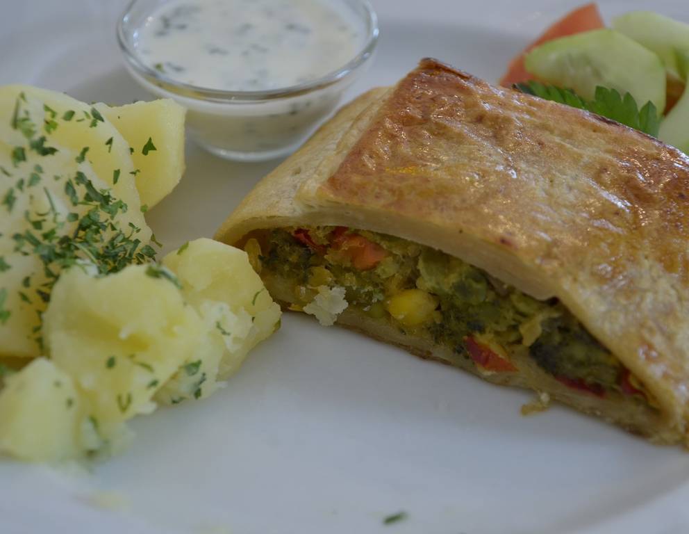- Gemüse mit Salz würzen. Crème fraîche und Eidotter durchrühren, mit dem Gemüse vermengen. Teig mit Gemüse belegen, so dass rundherum ein 5-6 cm breiter Rand bleibt. Ränder des Teigs über die Füllung in der Mitte zusammenfalten. mittelsdes Tuchs von der langen Seite her locker zusammenrollen und auf ein mit Pergamtenpapier ausgelegtes Backblech legen. Mit restlichem Öl bestreichen.
