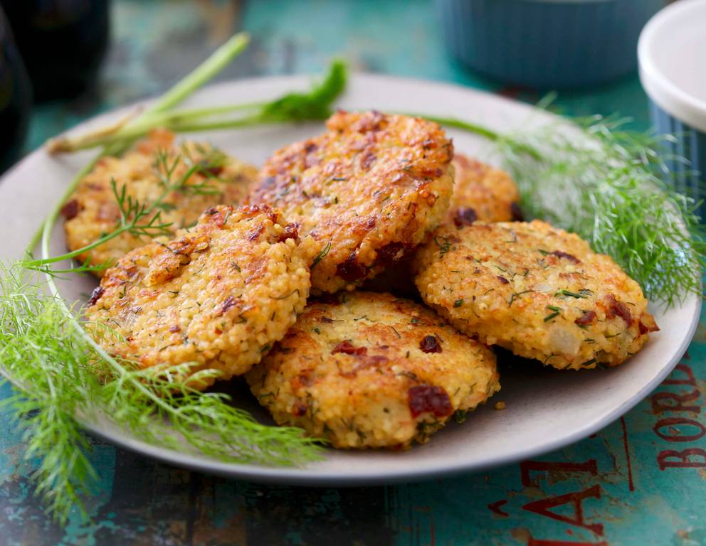 - Hirselaibchen auf beiden Seiten in Bröseln wenden. In einer Bratpfanne Öl erhitzen, Hirselaibchen darin goldbraun rösten.