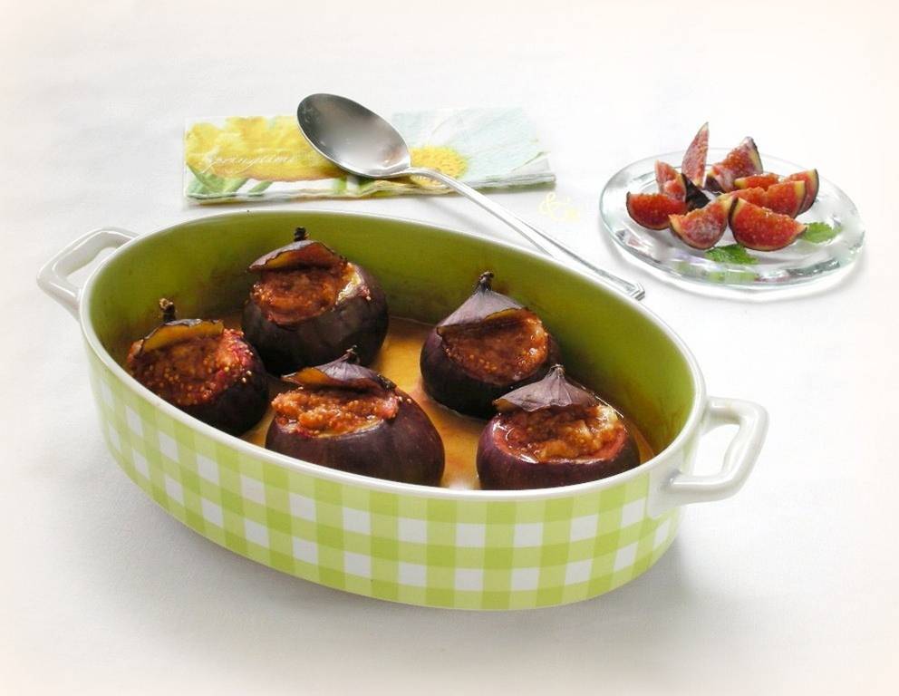 - Die gefüllten Feigen nebeneinander in eine kleine Auflaufform setzen und mit der Karamellsauce umgießen. Die gefüllten Feigen in Karamellsauce im vorgeheizten Backrohr bei 180 °C ca. 8 Minuten garen.