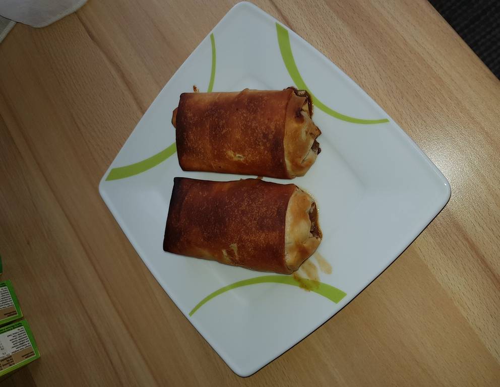 - Frühlingsrollen in einer beschichteten Pfanne in heisser Butterschmalz rundherum anbraten. Auf ein mit Pergamtenpapier belegtes Backblech setzen und in der Mitte des Ofens zehn bis zwölf min backen.