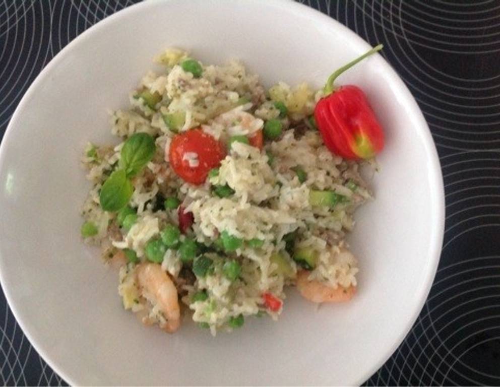- Die Shrimps in der Reispfanne heiß werden lassen. Die Kreolische Reispfanne mit Shrimps mit frisch gehackten Koriander bestreut zu Tisch bringen.