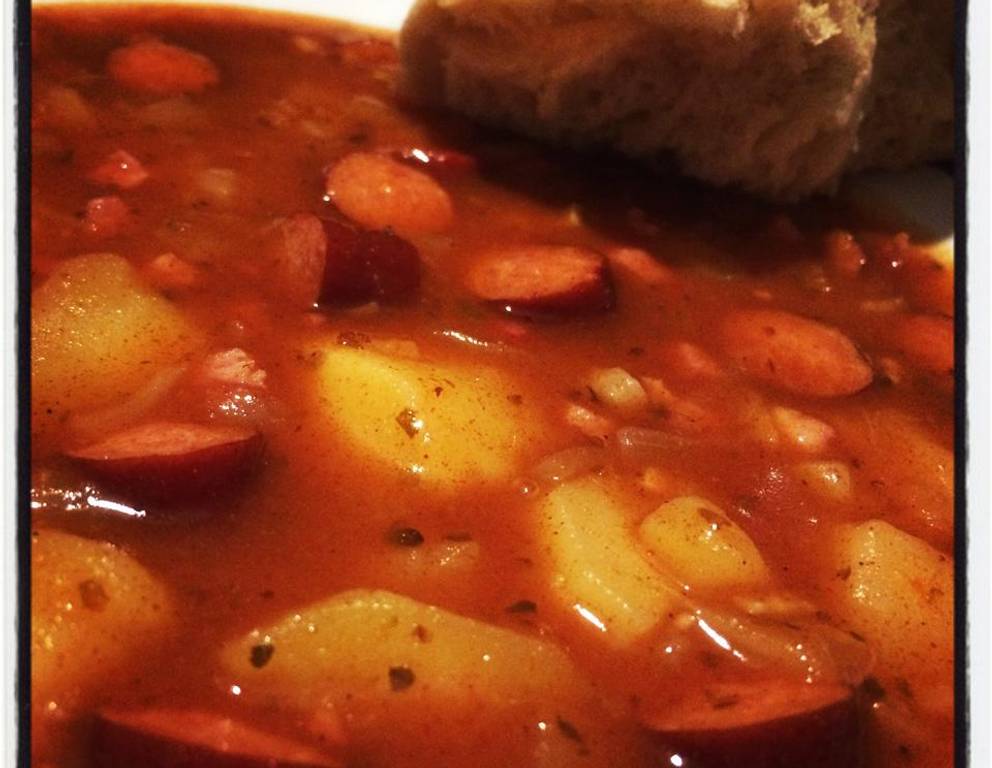 - Die Flüssigkeit mit Saucenbinder sämig einkochen. Mit Saft einer Zitrone bzw. Essig und Gewürzen süß-sauer nachwürzen. Das Kartoffelgulasch mit den Speckwürfeln und Petersilie bestreut anrichten.