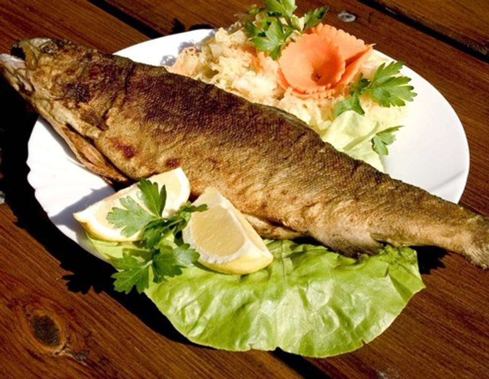 Mit Zitronenspalten und krauser Petersilie die Bachforelle Müllerin garniert servieren.