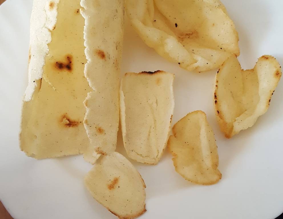 - Die Maistortilla in einer schweren Pfanne auf beiden Seiten ohne Fett anbraten, bis sich die Ränder heben und leicht gebräunt sind.