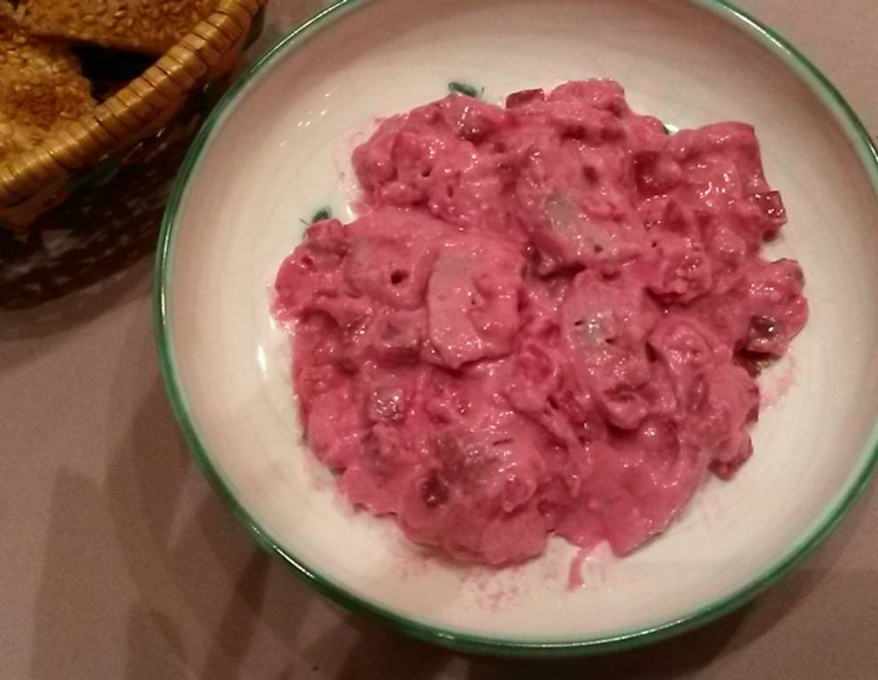 Wer den Heringsalat mit Rote Rüben besonders exklusiv zubereiten möchte, kann anstatt einem normalen Hühner-Ei einige Wachteleier für die Dekoration verwenden.
