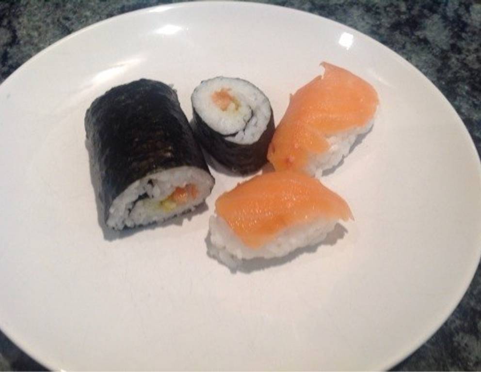 Wer möchte, kann für die Sushi vom Lachs auch echten Sushireis dafür verwendet.