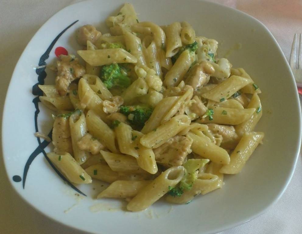 Nudeln für einige Minuten in der Soße liegen lassen. So schmecken die Penne Pollo mit Brokkoli noch intensiver! Alternativ kann das Gemüse auch ersetzt oder ganz weg gelassen werden.