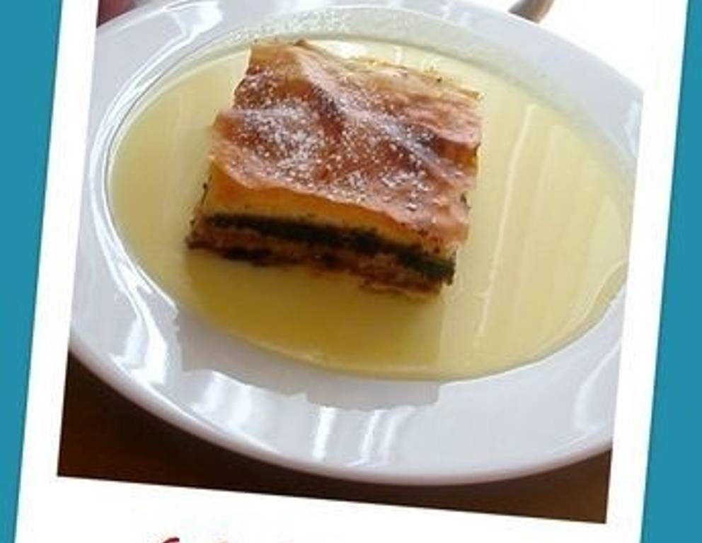 Der Fächerstrudel schmeckt am besten wenn man ihn mit heißer Vanillesauce serviert.