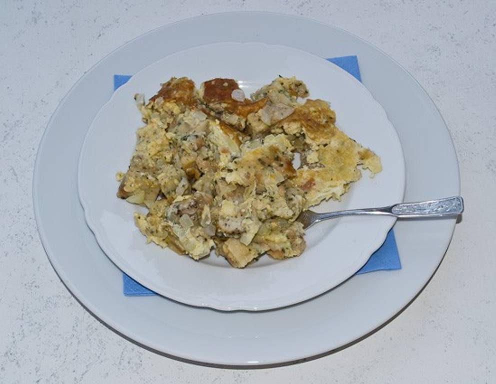 Dieses Knödel mit Ei Rezept ist die ideale Idee, wenn man einmal zuviele Servietten - oder Semmelknödel gekocht hat.