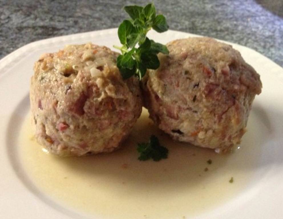 - Mit Majoran abschmecken und vom Herd nehmen. Milch und Eier beifügen, verrühren und über die Brot oder Gebäckreste geben. Mit Mehl stauben und gut vermengen. Ca. 20 Minuten ziehen lassen, nochmals gut durchmischen und mit feuchten Händen Knödel formen und in kochendes Salzwasser einlegen. Aufkochen lassen und dann auf kleiner Flamme 20 Minuten ziehen lassen. Die Restelknödel mit Salat, Sauerkraut oder geröstet mit Ei servieren.